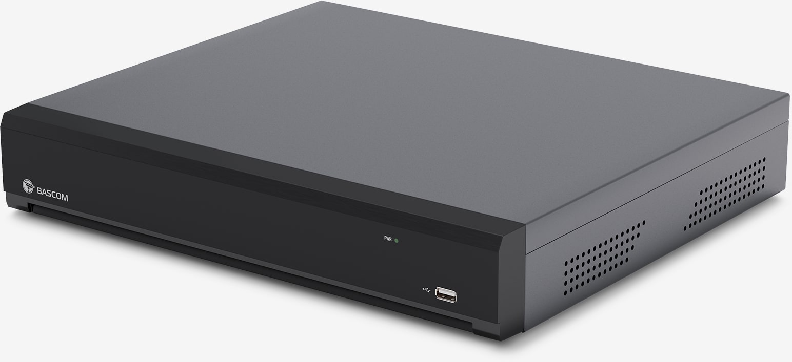Inspelaren är kompatibel med både trådlösa och kabelanslutna Bascom-kameror, oavsett modell eller serie – eller en kombination av båda. Det ger dig full frihet att bygga ett system som passar dina behov.