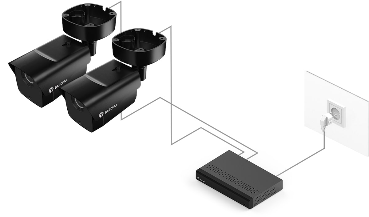 95 % av våra kunder har aldrig tidigare installerat ett kamerasystem – men installerar sitt Bascom-system helt på egen hand. Du skruvar fast kamerorna på väggen eller i taket, ansluter kontakterna, och systemet fungerar direkt.