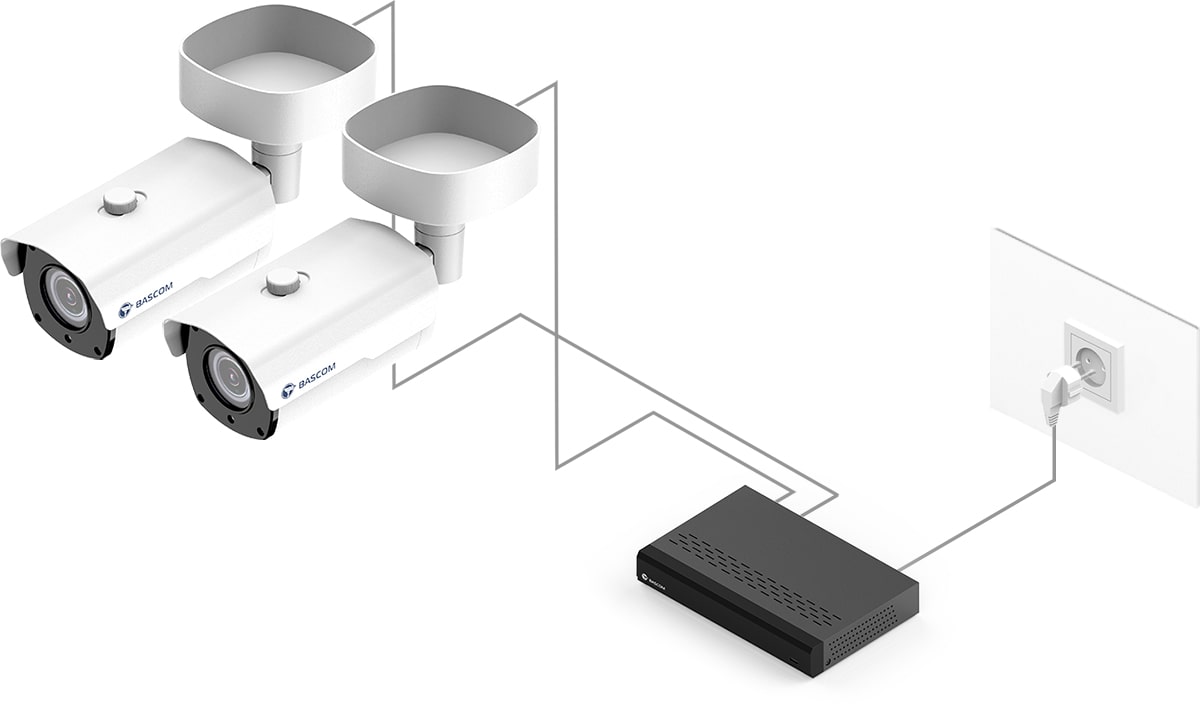 95 % av våra kunder har aldrig tidigare installerat ett kamerasystem – men installerar sitt Bascom-system helt på egen hand. Du skruvar fast kamerorna på väggen eller i taket, ansluter kontakterna, och systemet fungerar direkt.